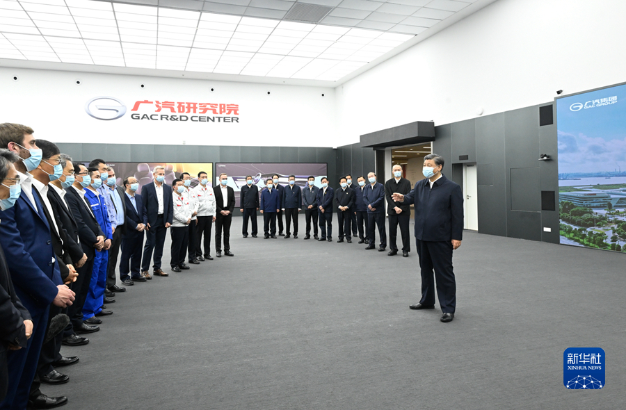 習近平隨后來到廣汽埃安新能源汽車股份有限公司考察。他走進企業(yè)展廳、總裝車間、電池生產(chǎn)車間等,了解企業(yè)突破關(guān)鍵核心技術(shù)和推動制造業(yè)高端化、智能化、綠色化等進展情況。在廣汽研究院,習近平仔細察看智能網(wǎng)聯(lián)實驗室、模型設計實驗室等,并同科技人員、企業(yè)家、職工、外資企業(yè)代表等交流。習近平指出,中國改革開放政策將長久不變,永遠不會自己關(guān)上開放的大門。一切愿意與我們合作共贏的國家,我們都愿意與他們相向而行,推動世界經(jīng)濟共同繁榮發(fā)展。習近平強調(diào),中國是個大國,要重視實體經(jīng)濟,走自力更生之路。關(guān)鍵核心技術(shù)要立足自主研發(fā),也歡迎國際合作。要加強教育和人才培養(yǎng),夯實科技自立自強根基。