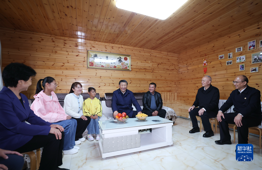 9月6日至8日,中共中央總書記、國家主席、中央軍委主席習近平在黑龍江考察。這是6日下午,習近平在大興安嶺地區漠河市北極村,同村民史瑞娟一家親切交談。新華社記者 鞠鵬 攝