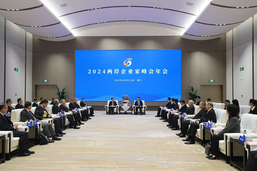 新華社廈門12月9日電 中共中央臺辦、國務院臺辦主任宋濤9日在福建廈門會見2024兩岸企業家峰會年會與會臺灣企業家代表。