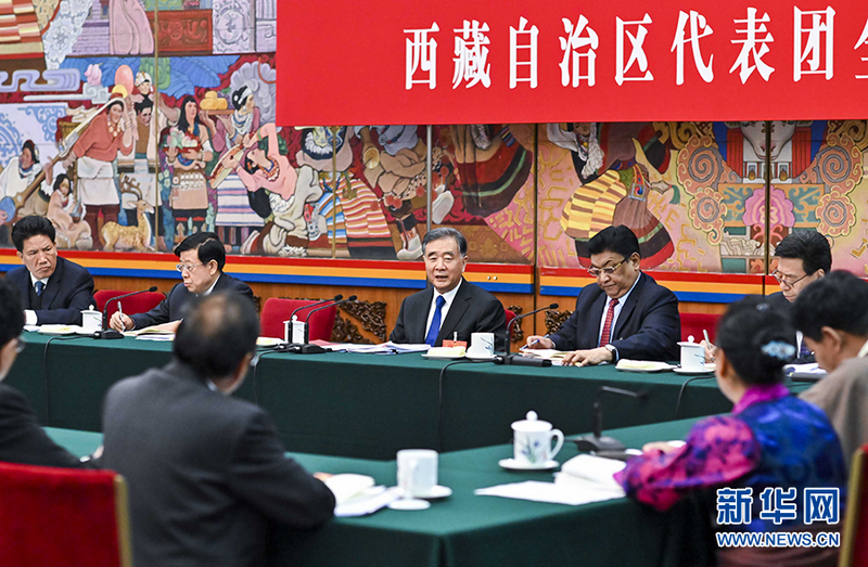 3月10日,中共中央政治局常委、全國政協主席汪洋參加十三屆全國人大二次會議西藏代表團的審議。 新華社記者 李學仁 攝